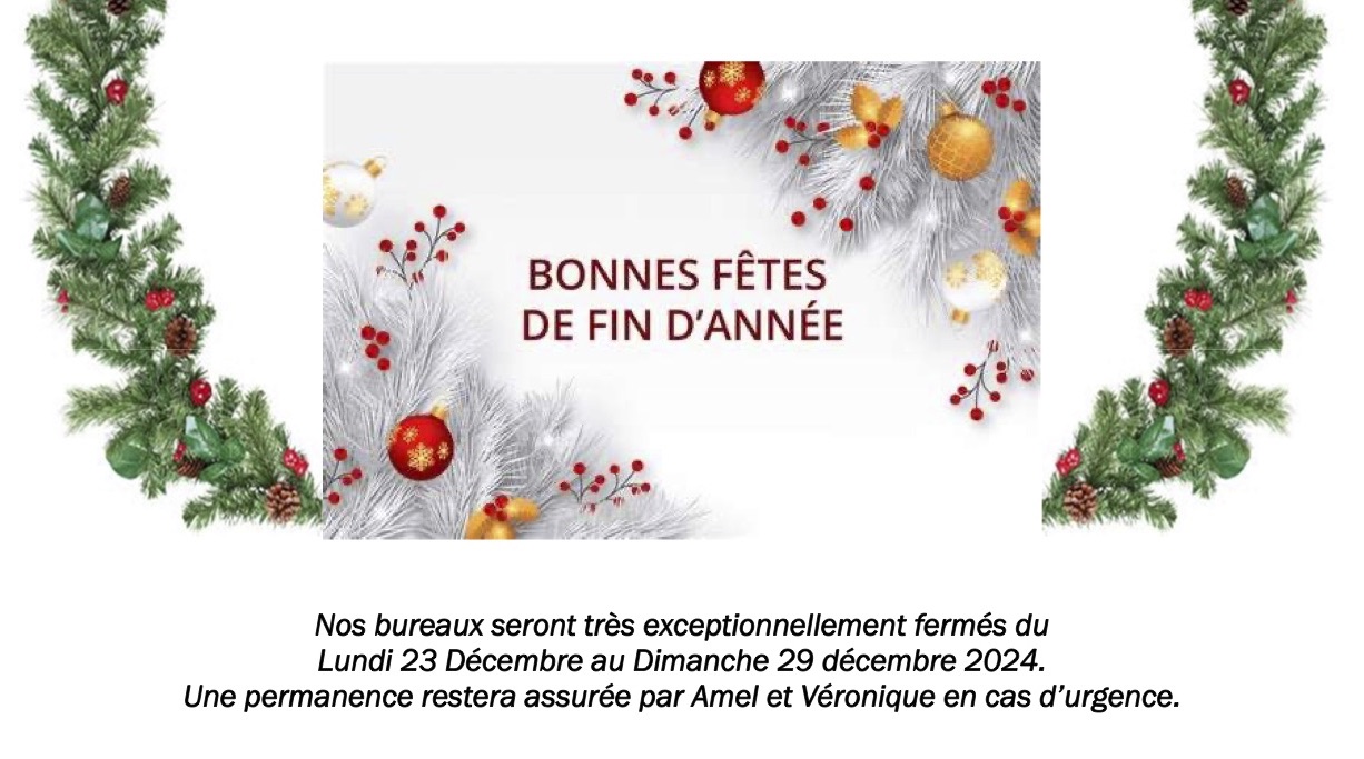 Fermeture exceptionnelle du 23 au 29 décembre 2024 - Permanence en cas d’urgence