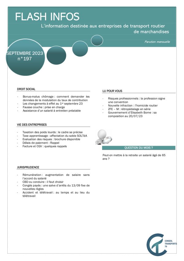 Flash INFOS CT79 - Septembre 2023 N*197